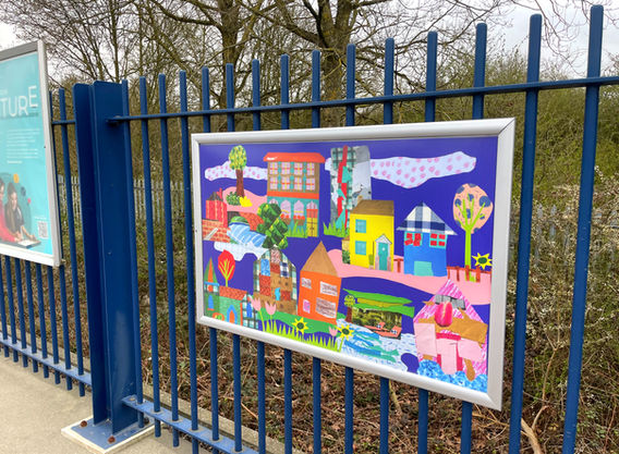 The Moving Murals exhibition celebrates young people’s creativity and their connection to community. Across five workshops in Banbury and Oxford, 64 participants used collage, lino printing, and sign writing to explore themes of place, identity, and local pride. Their artwork—now displayed at Oxford Parkway Station—captures the people, landmarks, and journeys that shape their lives.