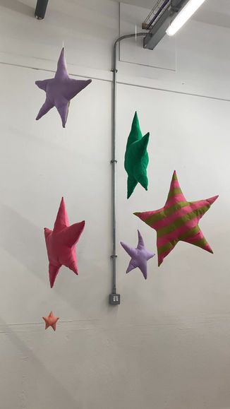 These soft sculptures bring the outside inside, creating a magical mobile that welcomes its audience to activate their spinning capabilities by touch. The stars hand from a ceiling, twirling around in response to visitors movements through an exhibition.
